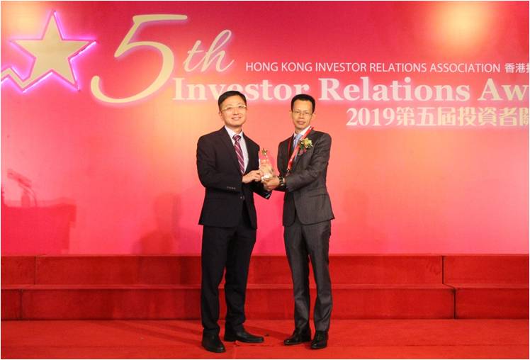 (Hong Kong, 30 May 2019) – Xinyi Glass Holdings Limited (“Xinyi Glass” or the “Group”) (stock code: 00868.hk), a leading integrated automobile glass, energy-saving architectural glass and high-quality float glass manufacturer, has won the “Best IR Company – Mid Cap”title forthe second timeat the 5th Investor Relations Awards 2019 hosted by the Hong Kong Investor Relations Association (HKIRA), and its Chief Financial Officer Lau Sik Yuenreceived for the first time the “Best IR by CFO” award, testifying to the Group’s outstanding investor relations performance.